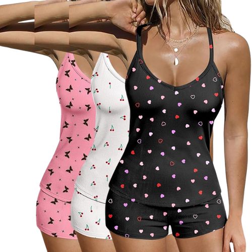 Ekouaer Ribbed Cami Pajamas Set! 🌙 Rib knit fabric, racerback tank, soft shorts for stylish sleep and relaxation 💖