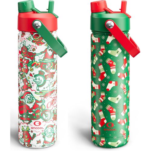 ENCOOL Christmas Insulated Water Bottle🎄 keeps drinks icy cold for up to 24 hours with a fun holiday design. Features a leak-proof lid, built-in straw, and BPA-free stainless steel❄️🎁.