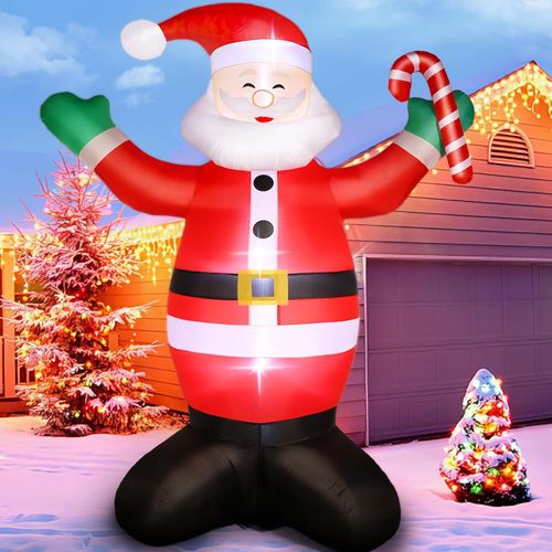 ENLIEASE 6FT Outdoor Santa Inflatable! 🎅 Light up your yard. Cute Santa holding a candy cane—SO festive! 🎄