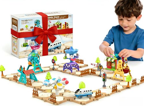 Essovee DIY Puzzle Track Car Set sparks STEM fun for kids. 🚗 125 pieces, educational logic toy, perfect for toddlers 3+, Christmas or birthday gifts. 🎁🧩