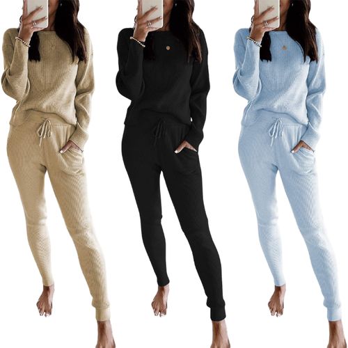 Eurivicy Fall Rib Knit 2 Piece Outfit keeps cozy stylish. Long-sleeve pullover, drawstring pants, and handy pockets for comfy wear. 🍂👚