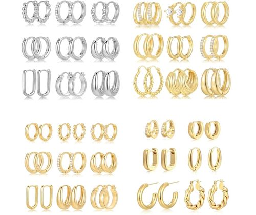 AXHION 9 Pairs Gold/Silver Hoop Huggie Earrings Set adds chic sparkle to every outfit 💛💎14K gold plated, hypoallergenic, lightweight chunky hoops perfect for everyday wear, layering, or gifting 🎁