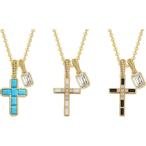 Fettero Gold Cross Necklace for Women adds elegance and faith-inspired style 💛. 14K gold plated, double pendant, removable cross, CZ diamond accents—trendy, dainty gift for her 💖📿