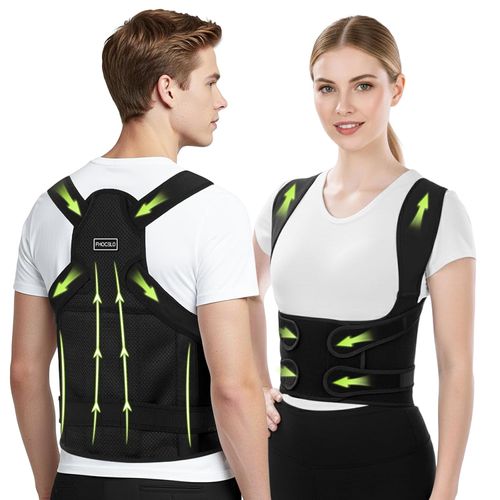 FHOCSLO Back Brace Posture Corrector provides full back support. 🖤 Adjustable straps relieve shoulder lumbar pain and improve posture daily comfort. 💪🧍♂️