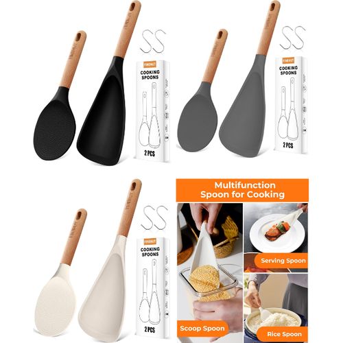 FINENUT Multifunction Silicone Spatula Spoon makes cooking effortless. 🍳 Heat-resistant, BPA-free, and safe for non-stick cookware use. 🍚