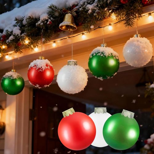 FINEWEN 9Pcs Outdoor Christmas Decorations include large inflatable holiday balls for festive yards. Bright colors, easy setup, and weather-friendly display. 🎄🎈🏡