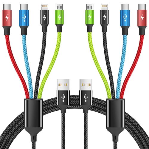 firsting 4-in-1 Multi Charging Cable! 🔌2-pack 5FT nylon braided travel cables, tangle-free design with USB-C, Lightning, and Micro USB compatibility—perfect for iPhone, Android, iPad, and more! 📱✈️⚡