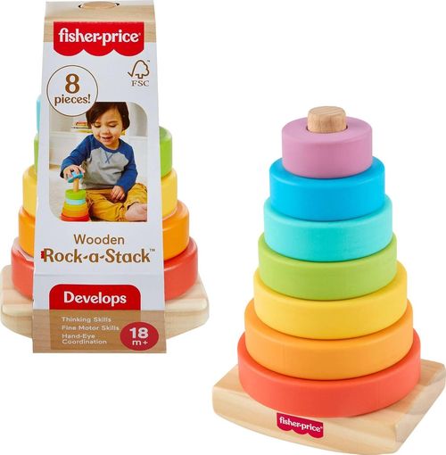 Stack, knock, repeat! 🟢 Boost your toddler’s motor skills with the Fisher-Price Wood Rock-a-Stack – fun learning, one colorful ring at a time! 👶