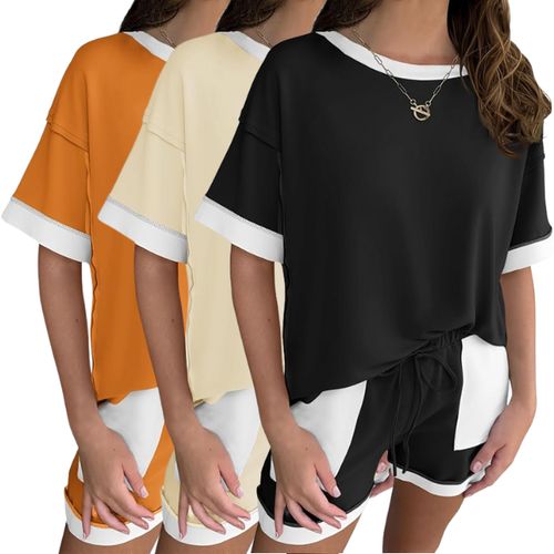 Fisoew 2-Piece Outfit keeps you comfy and stylish all day. 💕 Oversized sweatshirt, matching shorts, and trendy color block design. ☀️