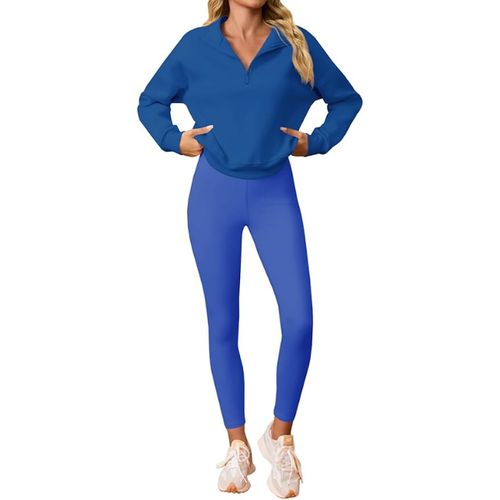 Fisoew 2 Piece Outfits Sweatsuits are stylish matching workout tracksuits 👟 Half-zip pullover, legging pants, comfy fit for active days 💪.