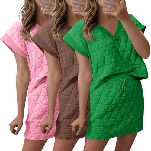 Fisoew Argyle 2 Piece Outfit brings cute preppy vibes to your everyday style. 💖 V-neck top, matching mini skirt, and comfy lounge fit! 🎀👗