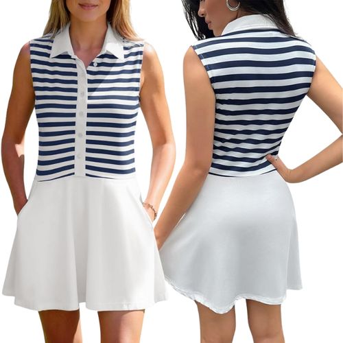 Fisoew Casual Mini Dress 🌸 is a breezy striped summer favorite! ☀️ a sleeveless design, button collar, and handy pockets for effortless style and comfort 💕👗.