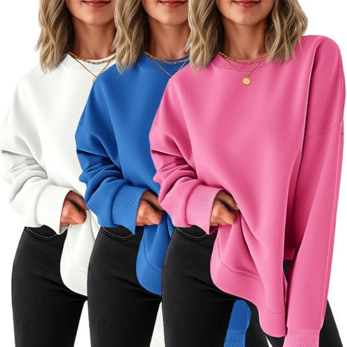 Fisoew Crewneck Sweatshirts deliver cozy casual style 🍂👚 Long sleeves, side split high-low hem, loose tunic fit perfect for fall comfort.