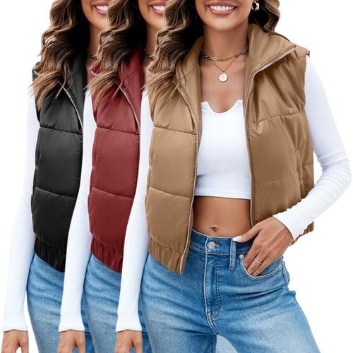Fisoew Faux Leather Puffer Vest π€ adds edgy warmth to your winter wardrobe. π§ With a high stand collar, zip-up front, and cropped silhouette, it’s a sleek layering piece for chilly days! π§₯