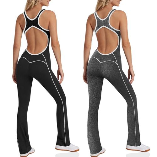 Fisoew One-Piece Workout Jumpsuit combines style and performance! 🖤 Backless scoop neck, sleeveless, and comfy leggings—perfect for gym, yoga, or athleisure! 💪