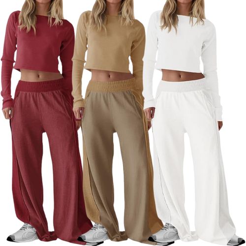 Fisoew Wide Leg Lounge Outfit brings effortless style and comfort anywhere you go. Off-shoulder crop top, wide-leg pants, and perfect travel vibe! 🌍💕