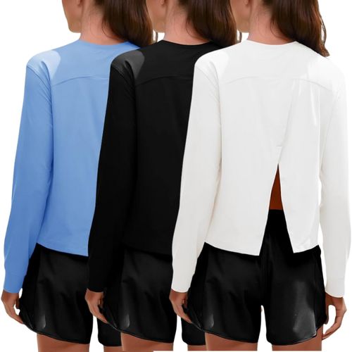 Fisoew Workout Top blends comfort and performance in style 💪 Split back design, crewneck fit, and breathable long sleeves 🏃‍♀️.