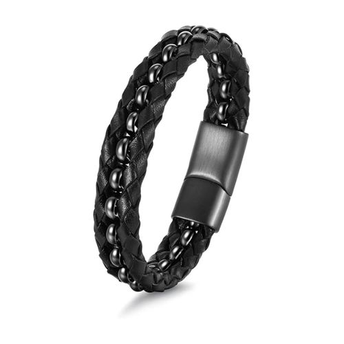 FLHEART Bracelet Gifts for Men black braided leather cuff. Stainless steel, secure clasp, meaningful gift for dad husband boyfriend. 🖤🎁💪