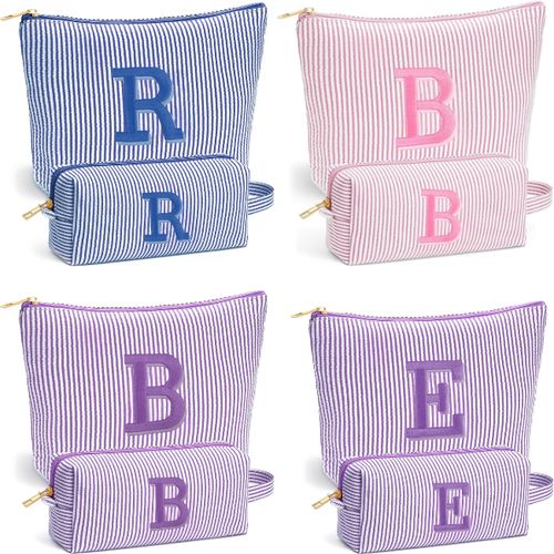 Fohufo Birthday Gifts custom initial makeup bag set. 💜 Portable zippered cosmetic pouch travel-friendly purple design durable lightweight compact. 🎁👜