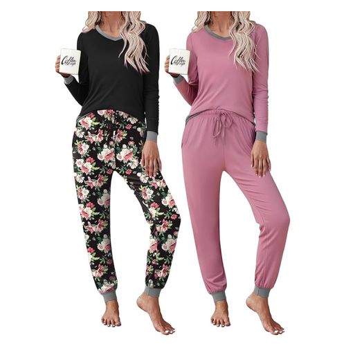 Frcdaunrs 2 Pack Pajama Sets bring cozy matching comfort 🛌 Long sleeves, V-neck, pockets included, perfect loungewear for relaxing at home 🌙💖