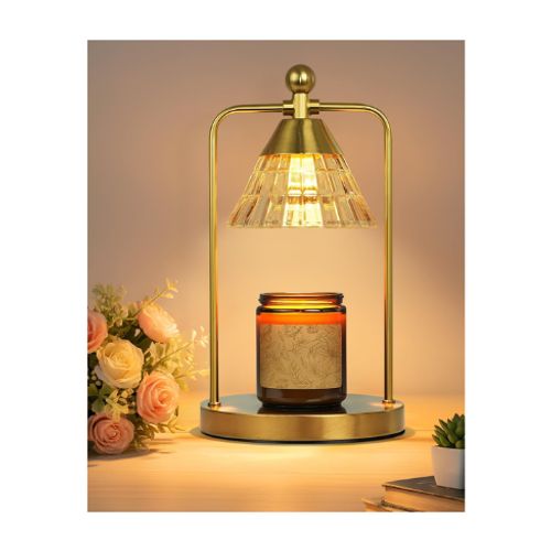 FUNNYBEHOM Candle Warmer Lamp melts wax safely with style 🕯️ Gold lamp, timer dimmer, 2 bulbs, perfect for birthdays, housewarming, and home décor 🎁🏡