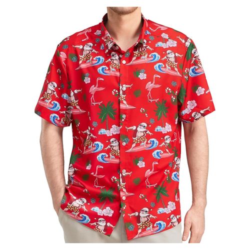 Giggling Getup Christmas Shirts bring festive fun to any outfit! 🌺 Casual Hawaiian style, short sleeves, button-down—perfect for holiday parties!