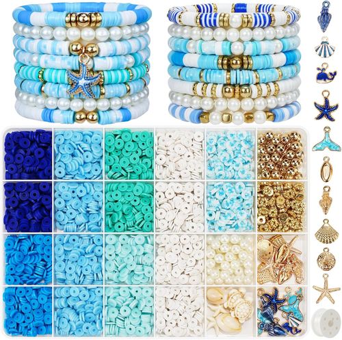 Gionlion Clay Beads Bracelet Kit 🎨💙 – includes blue clay beads and golden pearls for DIY jewelry. Perfect for charms, crafts, and gifts. 💍🎁