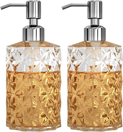 GLADPURE 2-Pack Soap Dispensers! 🧼 Elegant diamond-cut glass, refillable design, and a rust-proof stainless steel pump! ✅