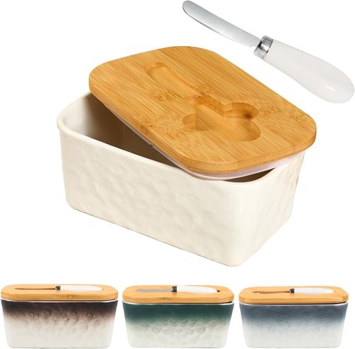 Keep your butter fresh AND fancy! 🧈 This chic GLAVIONIX Ceramic Butter Dish with Bamboo Lid + Silicone Seal is countertop goals! 😍