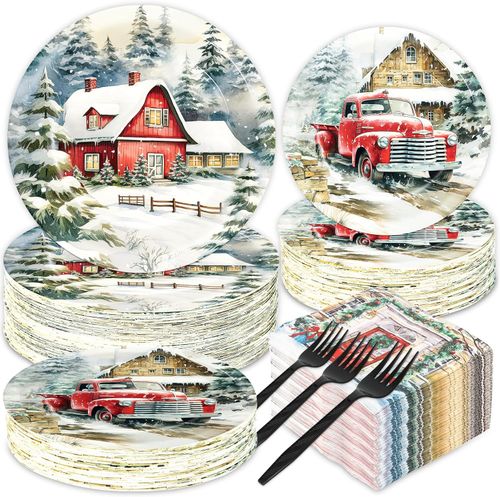 GOLDGAO 200PCS Christmas Paper Plates & Napkins Set! 🎉 Farmhouse charm meets practicality. Perfect for parties & birthdays! 🎄