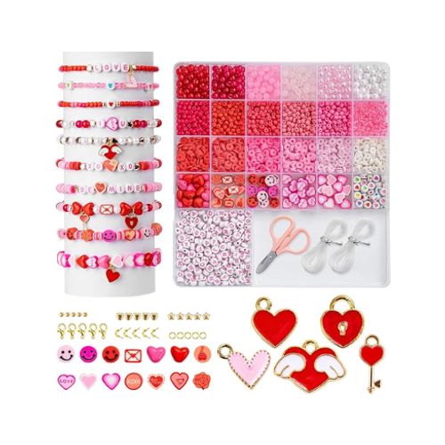 Goldwise Valentine’s Day Beads Kit inspires DIY love-themed bracelets 💖🛠️ Includes letter beads, heart charms, clay beads, and findings for creative gifts 🎁