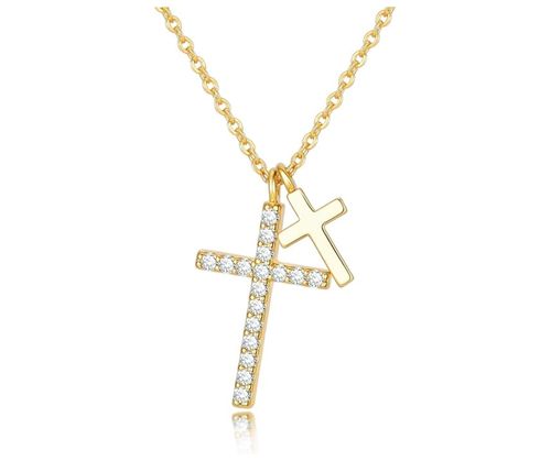 Goxygen Gold Cross Necklace! ✝️ Elegant and meaningful jewelry! 14K gold-plated, dainty double cross pendant, adorned with cubic zirconia, perfect for faith-inspired gifts.!
