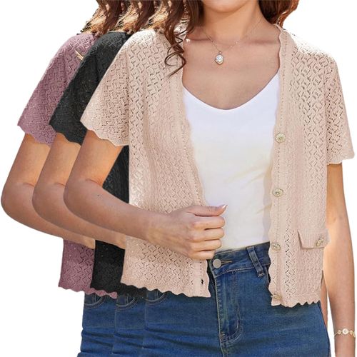 GRACE KARIN 2026 Cropped Cardigan is a lightweight crochet shrug perfect for layering. ๐งถ Short sleeves, hollowed design, breathable knit. ๐ธ