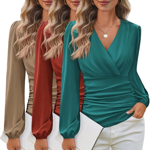 GRACE KARIN Long Sleeve Blouses are elegant wrap tops perfect for dressy casual business looks. 👚 Wrap style, lightweight fabric, flattering fit. 🌸