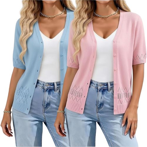GRACE KARIN Short Sleeve Sweater 👚!🌸 Adds light, chic layering to any outfit! Cotton fabric, button-up V-neck, dressy casual style for everyday wear.!