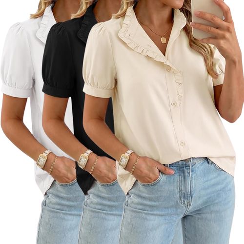 GRACE KARIN Summer Blouse! 👚 Short sleeve V-neck button-down top, dressy casual style—perfect for work, office, and trendy everyday outfits 💼💖☀️