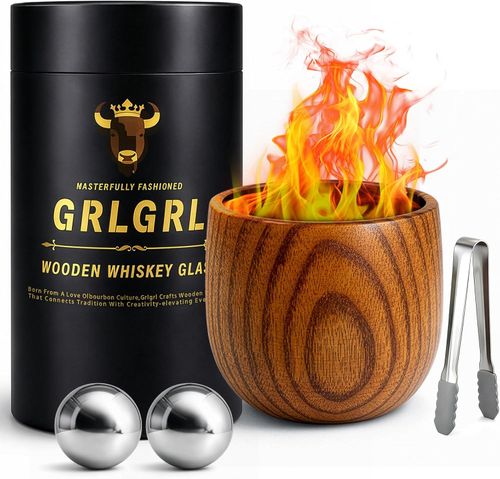 GrlGrl Charred Wooden Whiskey Glasses! 🥃Rustic bourbon drinking cups, unique charred wood design—perfect gift for whiskey lovers, dads, husbands, and boyfriends! 🎁🔥💖