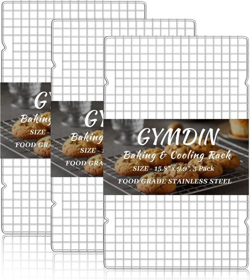 Gymdin Cooling Racks keep baked goods perfect every time 🍪 3-pack stainless steel, 16"x10", oven & dishwasher safe, ideal for cookies, roasting, and jelly rolls 🥐🔥