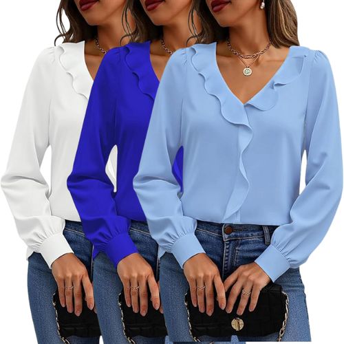 Halife Dressy Casual Blouses ✨👚 Long sleeve, ruffle V-neck design—trendy and polished, perfect for business, work, or stylish everyday wear.