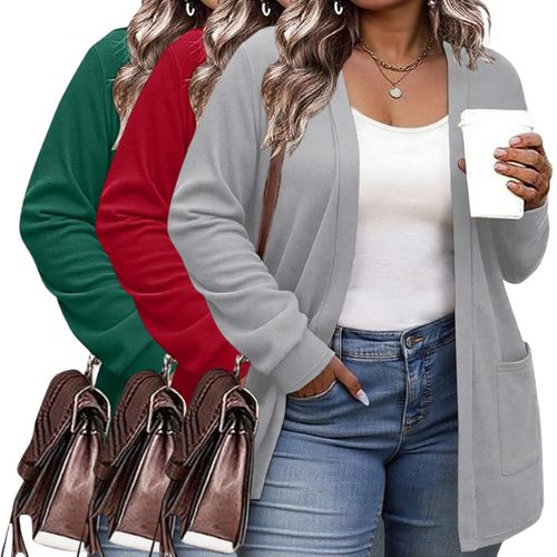 Halife Plus Size Cardigan 🌼 keeps every outfit cozy and stylish. Lightweight, open-front design with pockets, perfect for layering anytime.