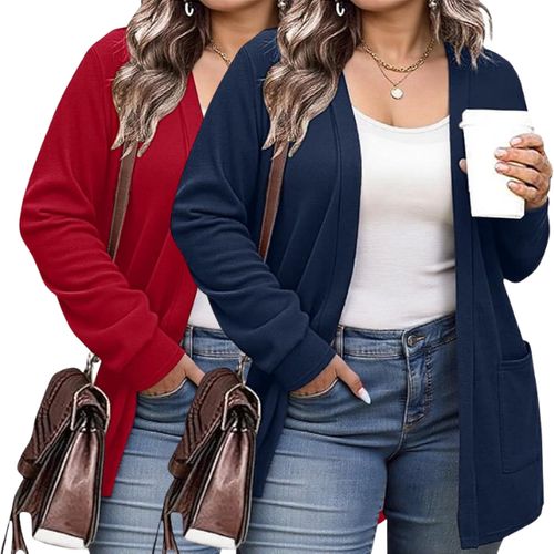 Halife Plus Size Cardigan Sweaters combine comfort and style. Lightweight, open front, long sleeves with handy pockets. 🧥💖