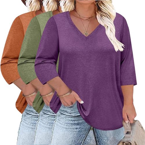 Halife Plus Size Tops offer comfy, casual style for everyday wear. 3/4 sleeves, V-neck, and loose tunic fit XL-5X. ✨👚💖