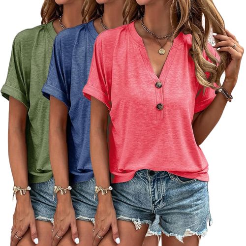Halife Short Sleeve T-Shirt keeps you cool and stylish. 🌸 Button V-neck, loose fit, and perfect for everyday summer wear. ☀️