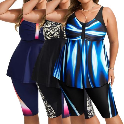 Splash in style! 💦 Hanna Nikole’s Plus-size Tankini + Capris = summer made easy & comfy! 🩱