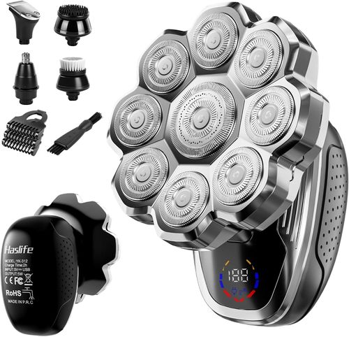 haslife Electric Razor ⚡🪒 9D floating head, wet & dry use, 5-in-1 body shaver with magnetic detachable blades—perfect for bald head grooming and full-body shaving.