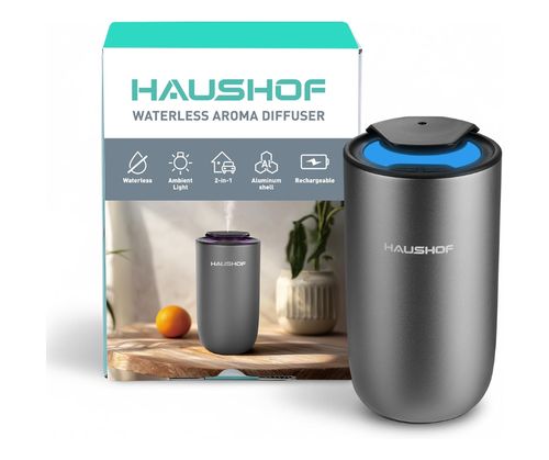 HAUSHOF Waterless Essential Oil Diffuser brings smart aromatherapy to your home or car with elegance and ease. 🌿 Auto on/off, 3 mist levels, 3 color lights, and rechargeable portable design. 💧🔋