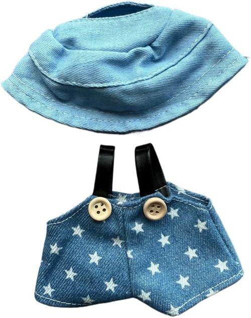 HERSIN 17cm Doll Clothes Set 👒 dress up your Labubu dolls in style! Includes hat and overalls, star denim design—cute, unique outfit perfect for 17cm Labubu dolls 💖🧸.
