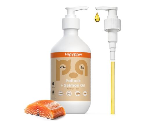 HipyPaw Fish Oil Omega-3 for Dogs & Cats 🐾 Salmon & pollock oil, promotes skin, coat, brain, joint, hip, and heart wellness—16 oz liquid supplement 💖