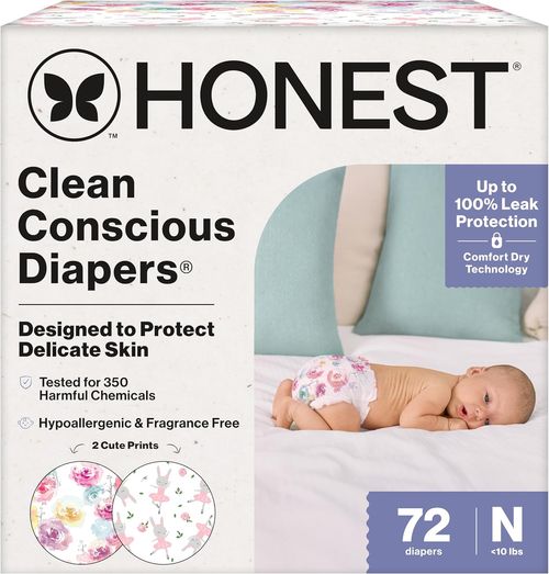 Gentle on baby, easy on parents! 👶 Honest Company 72-count Newborn Disposable Diapers = ultra soft, hypoallergenic, and super cute! 💖