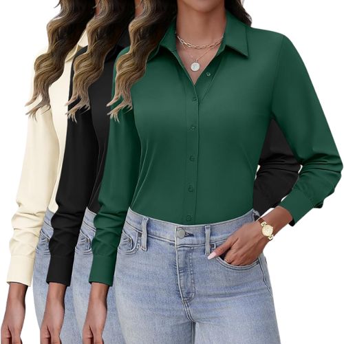 HOTOUCH Button Down Shirts for Women combine style and comfort. 👔 Long sleeve, wrinkle-free, slim fit—perfect for work, office, and professional looks.